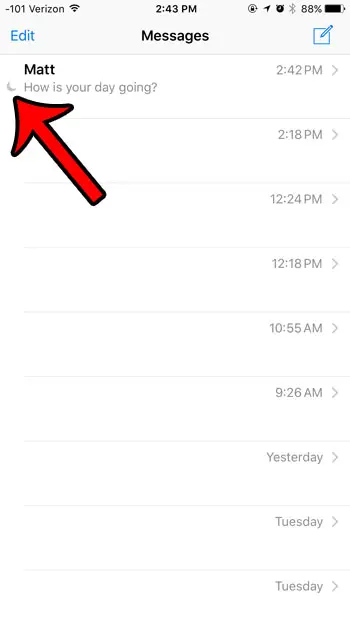 Adım 2: Solundaki hilal ay simgesi olan mesajı seçin.