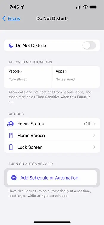Apple iOS işletim sisteminin daha yeni bir sürümünü kullanıyorsanız, DOT DOT DIST RISILE özelliği “Focus” adlı benzer bir ayarla birleştirilmiştir.