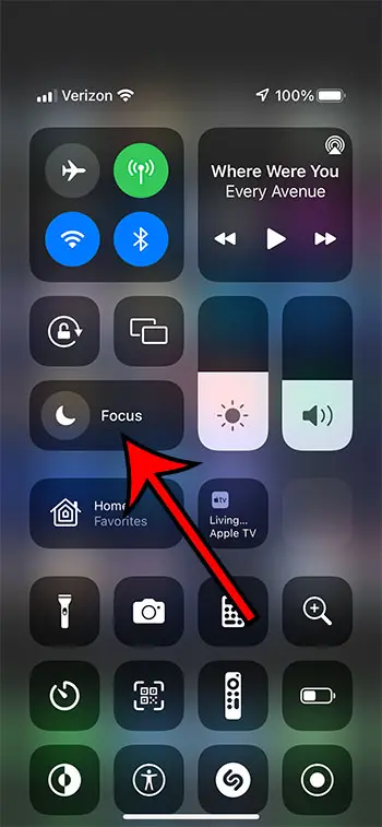 Ayrıca, ekranınızın sağ üst köşesinden aşağı kaydırırsanız, kontrol merkezini açacaksınız. Bu menüde “Odak” kelimesinin yanında yarım ay bir simge var.