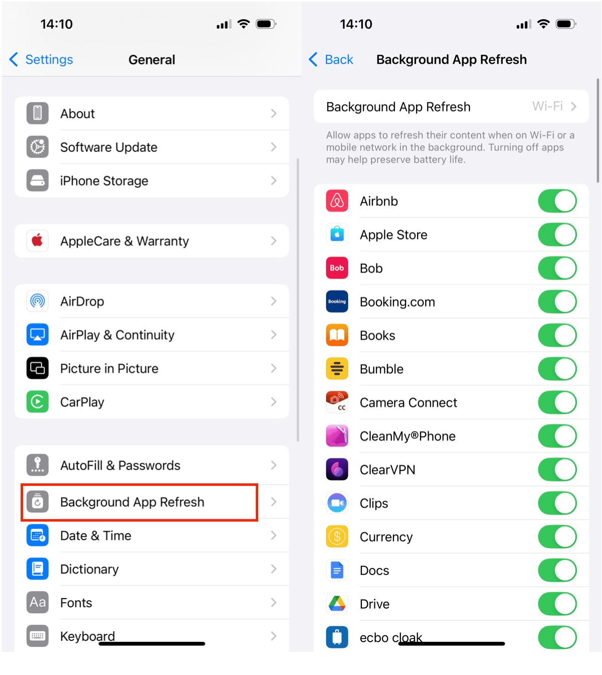 - Arka plan uygulamasına dokunun ve şunu seçin: kapalı, wi-fi veya wi-fi ve hücresel veriler.