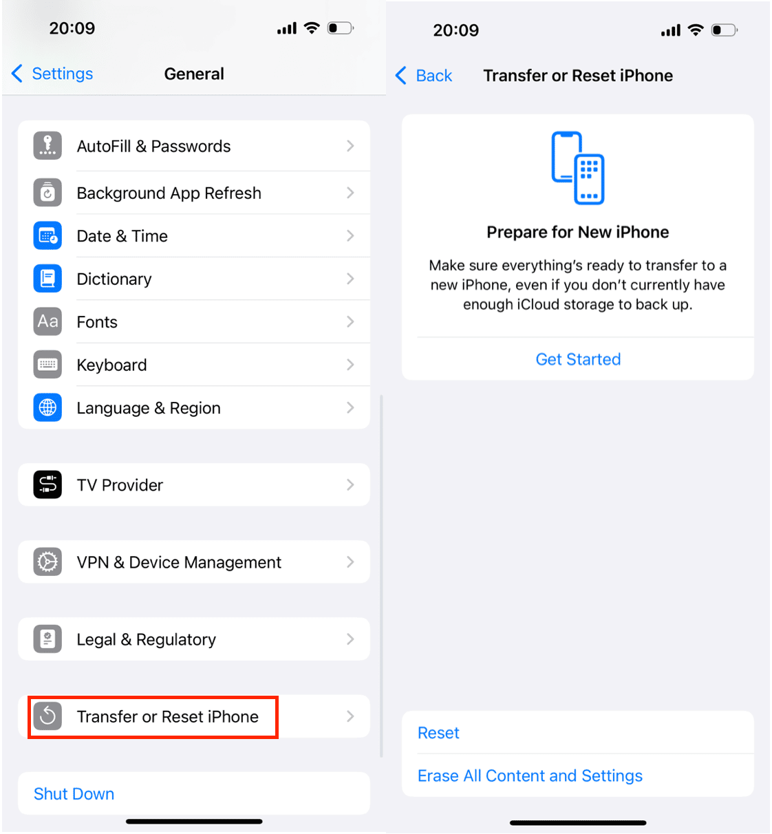 - Genel> Sıfırla> Tüm İçerik ve Ayarları Sil.