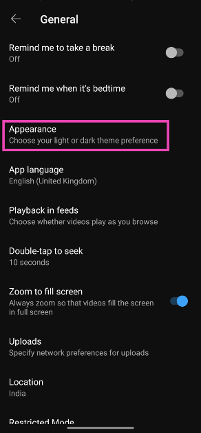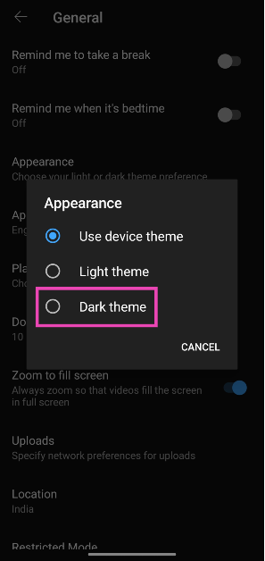 Telefonunuzda sistem çapında karanlık mod kullanmak bazen belirli uygulamalarda beklenmedik hatalara neden olabilir. Bu hataları ortadan kaldırmak için YouTube'un özel karanlık moduna geçin.